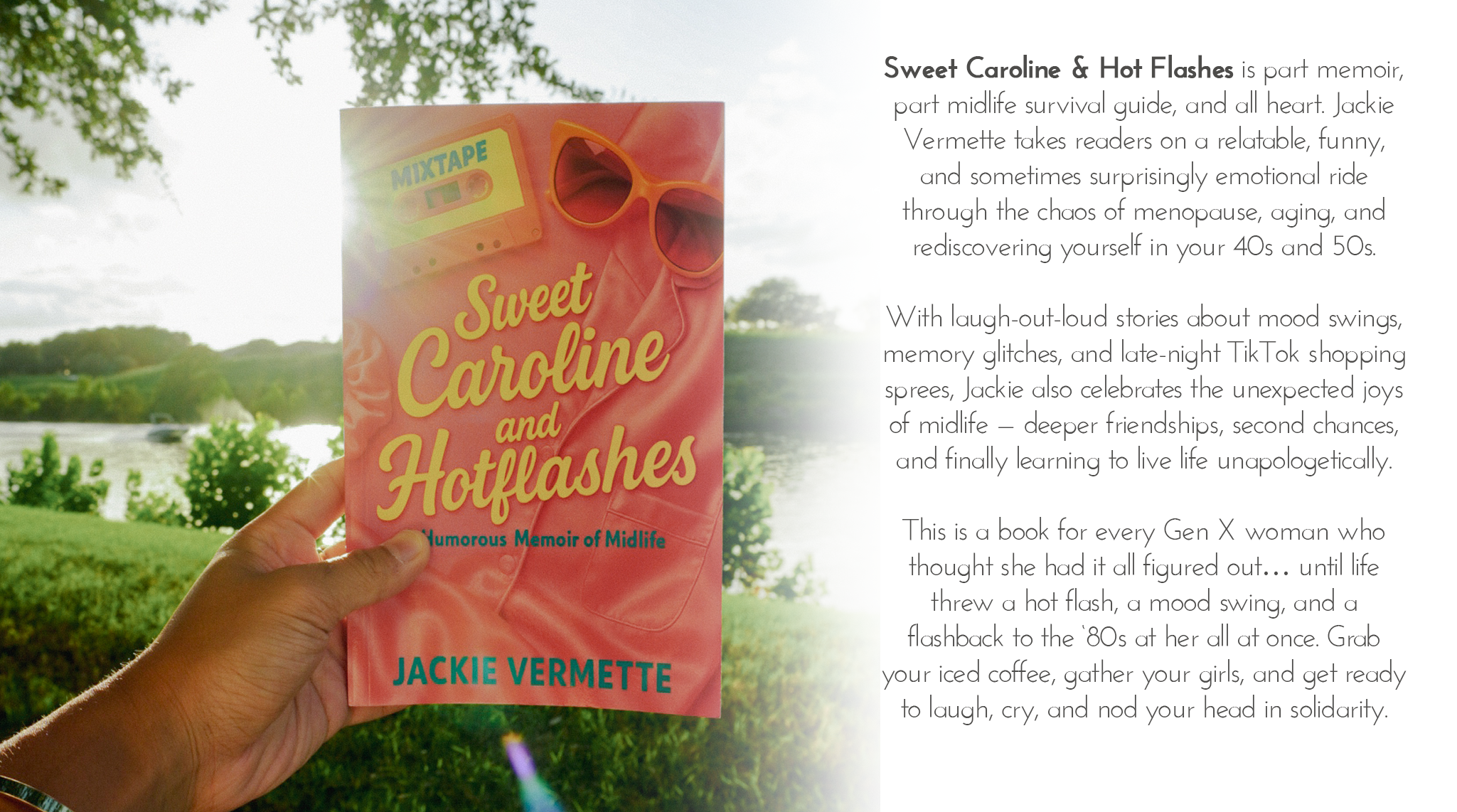 That’s the story Jackie Vermette shares in Sweet Caroline & Hot Flashes, the book every midlife woman didn’t know she needed.